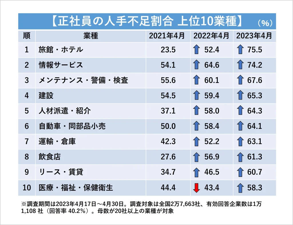 特にサービス業や医療・福祉分野での人手不足が顕著であり、これらの業種では労働需要の増加に対して労働供給が追いつかない状況が予想されています。